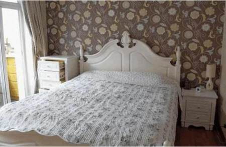 卧室,碎花的背景墙,屋里放了一张床,很简约,暂时没有人入住,所以没有进行装饰。